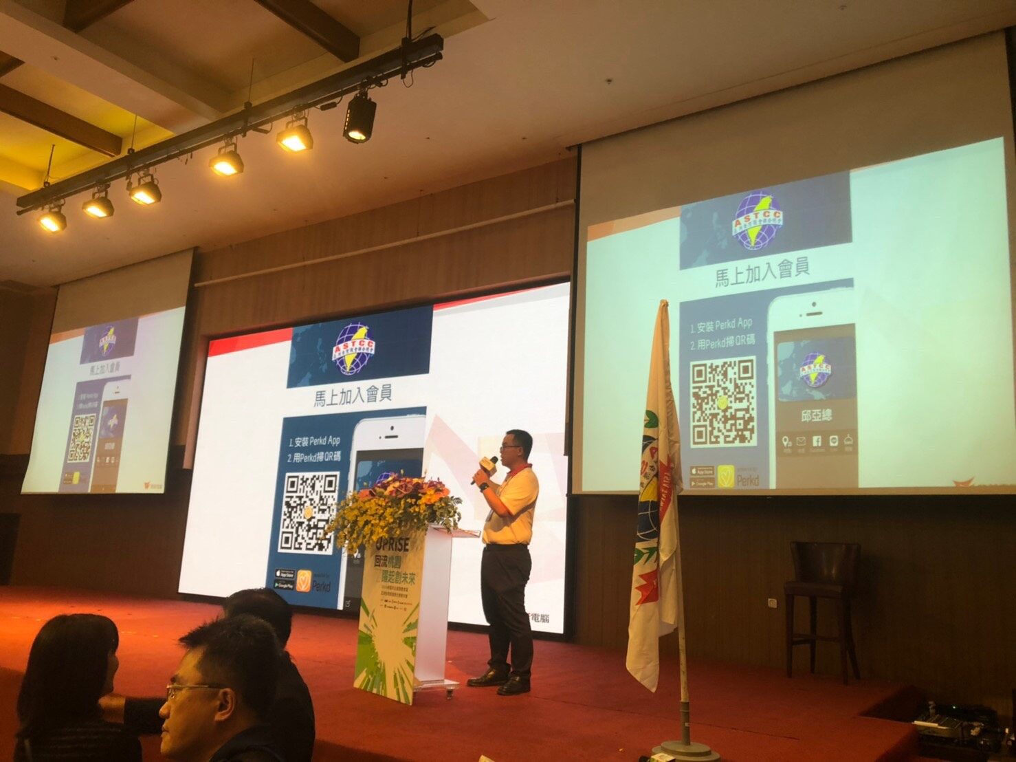 越南鼎捷數智 許智豪總經理,以服務亞太地區華商多年經驗來協助主導開發的「亞洲台灣商會-會員平台APP」向會員進行介紹,其四大功能包含 經商快訊、緊急救助、會員服務、生活資訊,將會員的實體互動轉化到長期服務,為廣大台商建立E化、行動化的交流平台,供會員隨時掌握快訊。
