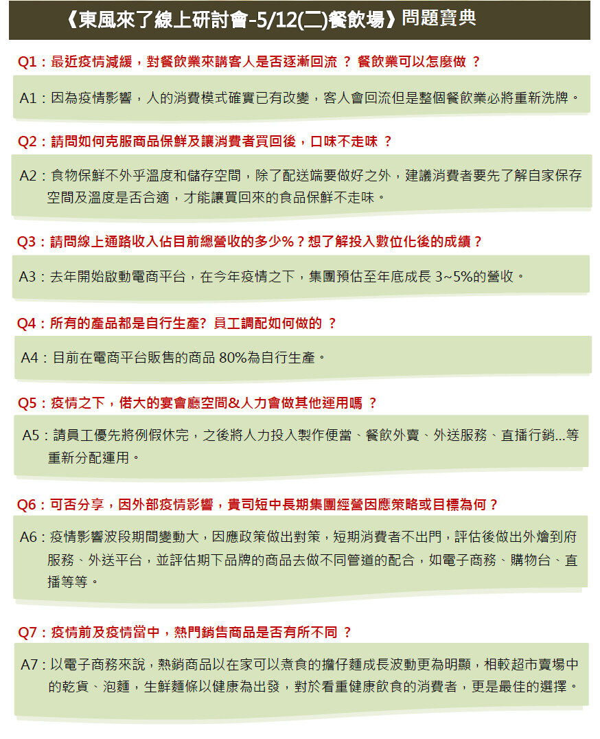 此外,下半年台灣餐飲業會保持在內需市場,恢復過去的產業榮景需要時間,也是大家共同努力的目標!