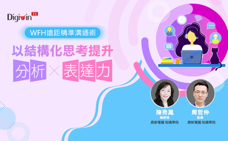 疫情期間使用最勤的工具就是視訊會議、LINE和電話,所以該如何長話短說、化繁為簡,歸納重點,讓對方在30秒內聽懂你的目的。我們經常會聽到部屬抱怨老闆沒耐心,但我們也常聽到老闆抱怨部屬說話沒邏輯、沒重點。今天秀鳳老師要分享如何運用《結構思考力》的精華,提升溝通及製作檢討報告的技巧。