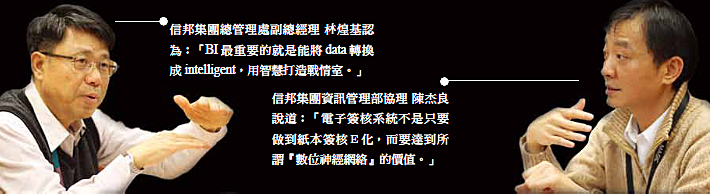 回顧整個產業環境,其實信邦早期下對了關鍵棋局,而得到今日的成就,背後擁有完整的管理網絡,適時地將信邦向上推了一把。除了對產品的堅持、對生產的要求、做BU的智慧切割外,還有資訊化的力量無形支撐著。