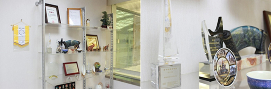 ▲研騰科技辦公室展示著很多獎狀和獎盃,其中一枚是榮獲第14屆金峰獎之「年度傑出大型企業」