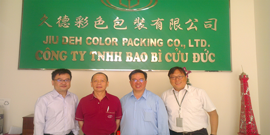 久德股份有限公司在1993年對外投資於越南胡志明市守德郡,從事鞋盒生產製造,成為最早在越南設立的印刷專業製造外資公司。2005年為了提供給客戶更完美的服務和品質要求,由守德郡遷移到平陽省新淵縣,廠區擴充到35,000 M2,並添購印前電腦輸出,四色,五色高速印刷機及各項自動化生產設備。產品更多樣化,含彩色盒、精緻禮盒、彩標、彩卡等各種彩色包裝用品。2006年增加大陸工廠服務據點,2007年成立北越工廠,2010年擴展柬埔寨服務據點。