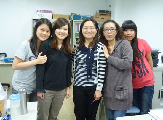 左起業務林俏彣、生管黃美連、鼎新電腦顧問師卓孟蘭、採購謝依芩、業務何家嫻