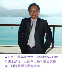 丘董事長表示:Workflow ERP系統上線後,元虹得以順利掌握進銷存及財務管理,並分享導入前後之效益: