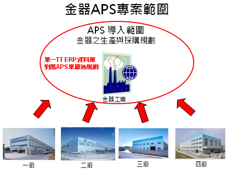 金器工業希望透過APS生產排程系統,以有限產能的資源讓供給與需求可以平衡,讓物料可以在來得及生產的前題下到料,不須太早採購形成庫存,而在物料已齊套料下,藉由自動倉儲的協助,可縮短揀貨時間與降低揀貨錯誤率的發生,讓設備資源能發揮最大的產能效率,以協助金器有充足的資訊因應市場快速變化的問題與挑戰。