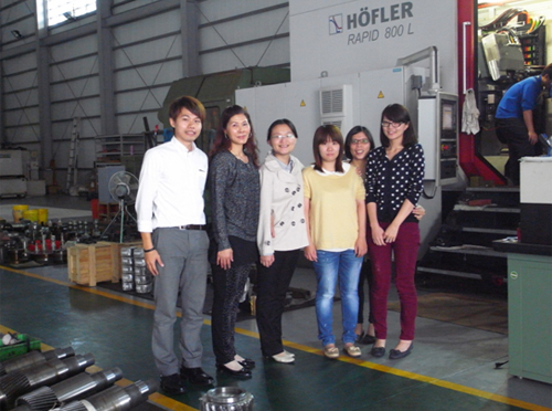 左起為專案窗口林傳翔、旭晟精密董事長、鼎新顧問卓孟蘭、生管蔡芳芳小姐、會計盧小姐、營業採購陳昱婷小姐。
