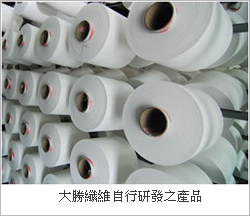 大勝纖維是空氣加工絲(Air Textared Yarn)生產專業假橪廠,設立於民國85年位於斗六工業區。使用人造纖維(尼龍、聚酯纖維、聚丙烯PP纖維)等原料,經由空氣特殊加工製程,使人造長纖維達到仿天然棉的手感、觸感、光感舒適等特性。大勝纖維為配合市場日益增加的少量多樣化的需求,大勝纖維開發變化十足性與服務機動性快速性,並由研發單位機動、快速地開發新產品與客戶共同開拓商機。使用自行生產的仿棉絲,空氣織機,劍桅織機生產平織,提花,彈性A.T.T尼龍高強力、聚酯高強力朝高科技機能性產品生產,達到休閒性、運動性、舒適性和自然性,秉持用心、品質第一、創新和客戶創造雙贏的成長空間。