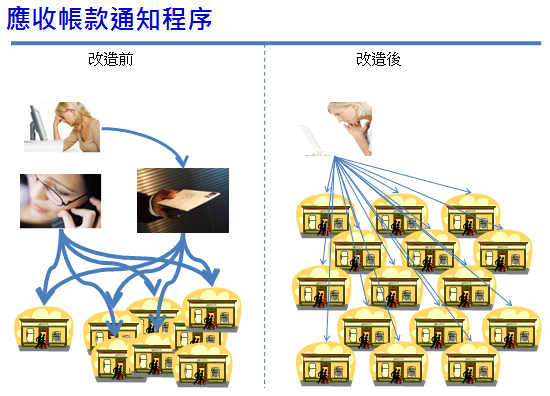 以往每間門市的應收帳款,每月由專人從ERP中將帳款轉出報表,再透過mail將報表一個一個寄送,寄送後還要逐一撥打電話給各店長確認mail有收到,若到了回覆時間店長尚未回覆相關訊息,還需要專人逐一確認與催款,如此繁複的人工作業著實浪費人力與時間;故喫茶小舖在規劃流程管理系統時,也將此困擾需求規劃進來,希望未來可以直接透過系統進行自動發送報表,降低人工作業處理時間。