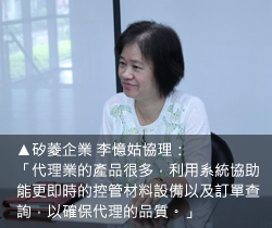李憶姑協理(以下簡稱李協理)滿意地說:「我們現在可以在系統裡很快速地查詢,不管是訂單的報價、進銷、庫存、以及產品分析,這些資料在系統中全部都非常清楚地呈現,也省掉很多一來一往的處理時間。」系統化不僅帶來工作效率的提升,且時間成本也大幅縮減,現在用同樣的時間能做的事情更多了,顯現資訊化程度的精準到位。