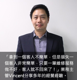 「拿到一個客人不簡單,但是損失一個客人非常簡單,只要一筆維修服務做不好,客人就不回來了!」Vincent分享自己多年的經營心得,願意反向操作投入訂製品的製作,這是在菲律賓競爭市場中少見的經營模式。Vincent更是打趣地將瑞興與客戶間的關係比喻成夫妻,想要長期維繫緊密關係,勢必要有媒介支撐著,就如瑞興所重視的「維修服務」,這也是其導入CRM重要的原因。