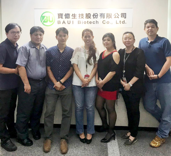 右三為寶億生技總經理顏妙娟,右四為寶億生技副總經理顏菁宜,