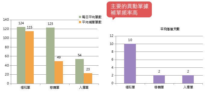 | 每日平均筆數 | 平均補單筆數 | 補單率 | 平均落後天數 | |