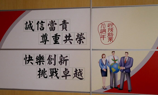 ▲利百代的核心價值,貼在中壢廠牆面上與員工共勉。