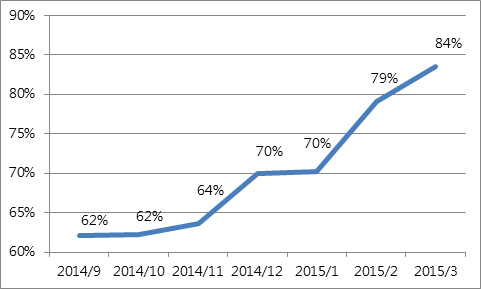 ▲圖二 訂單準交率趨勢圖(2014/9-2015/3)