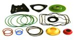 O型環及特殊型狀的環式迫緊: ![]() O型環呈斷面形狀圓形的環之總稱。O形環可用於冷氣、瓦斯等,氣體、水、油等多種液體的密封用。廣用於一般的空氣壓、油壓機器等。 |