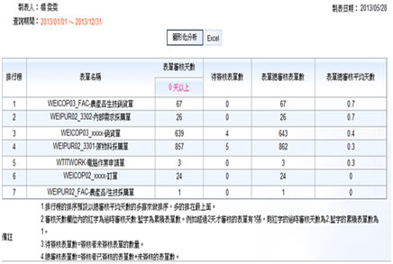 在鼎新ERP各系統模組上線後,緊接著規畫未來e化藍圖,自行開發EasyFlow電子表單(如圖一),加強落實管理制度,全面資料資訊化,將以往紙本流程追蹤管理,透過EasyFlow將非結構化資料,以結構化方式呈現資訊,以利高層資訊追蹤流程管理(如圖二),使用者可透過簡易表單填寫UI介面,進行相關單據申請。後續將上線表單『ECR、ECN、請購單…等』,應用鼎新所提供EasyFlow表單設計精靈產出相關表單,再藉由管理程式精靈產出相對應表單查詢作業,以利後續管理資料彙整與統計。此外,為使管理部門能即時且準確的掌握營運狀況,利用BI 商業智慧系統產生銷售及帳款的相關報表,並透過定期派送的功能讓相關人員即使在外地也能掌握資訊。