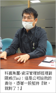 ▲圖中人物由左至右:科嘉集團資深管理部經理-劉隄威(Tim)、