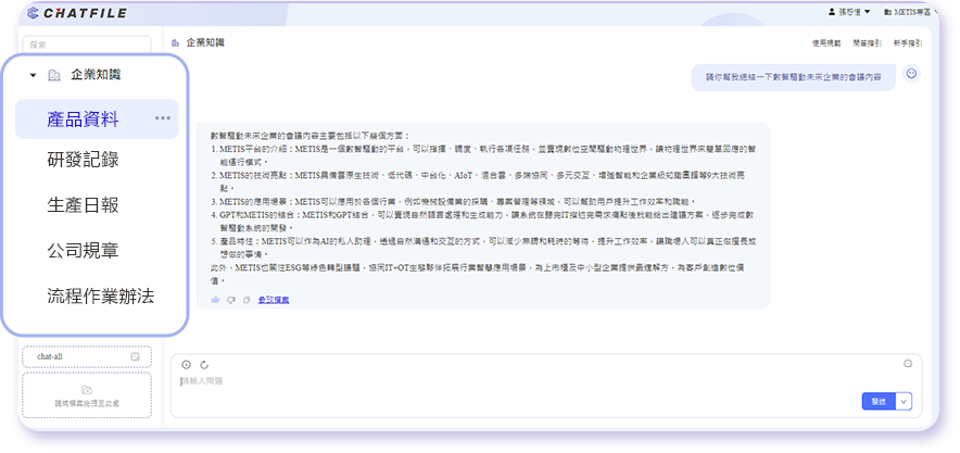 鼎新METIS > 知識中台 > ChatFile