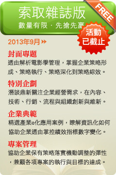 一路伴隨企業走過時代洪流的鼎新,深刻體會企業在艱難的環境中必得「突破思維」與「突破格局」,尤其面對市場趨勢與環境變動,唯有轉型才能脫胎換骨,掌握機會變革圖強,使企業立於不敗之地。本期主題「突維x突圍」希冀從策略、管理與IT角度為企業帶來觀念的突破與創新,進而為公司創造嶄新的營運模式。