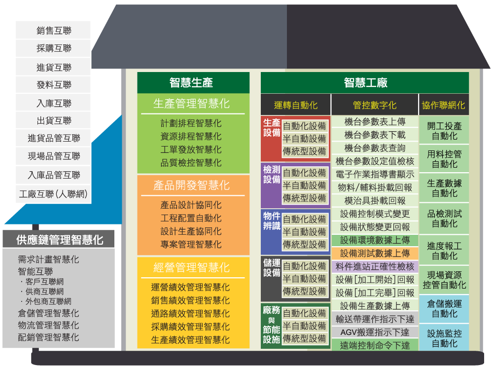 廠內智能物流系統透過條碼串聯移動設備、電子看板、ERP系統,從採購、領料、生產、倉儲、出貨到售後服務等管理流程智慧化作業,提升現場生產效率、訂單交期承諾以及存貨週轉三大智慧製造關鍵指標,為加速企業實現智慧製造邁向工業4.0!