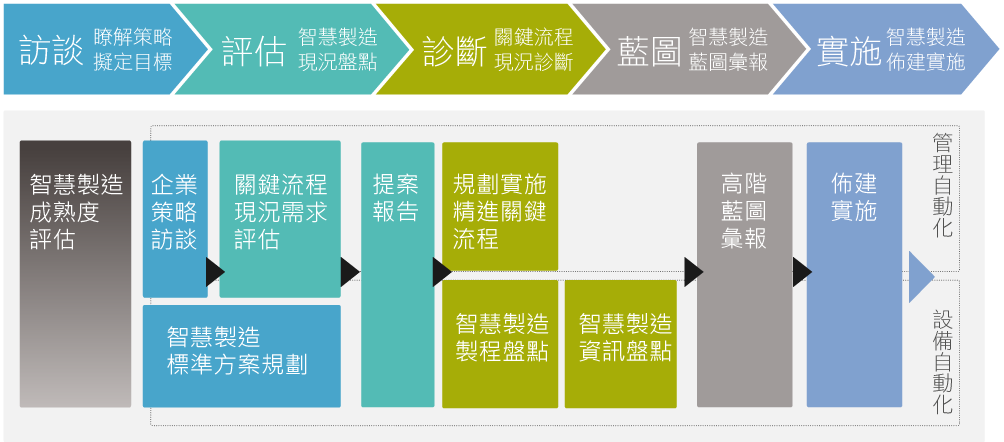 鼎新將企業在不同發展階段的策略重點、管理情境對應「工業4.0」理念中不同驅動類型,提供您所需要的解決方案。建議企業必須首先準確定位自身所處發展階段的關鍵策略(前往成熟度評量),再找到與「工業4.0」的對接點,才能借用對應的解決方案,準確跨入「工業4.0」的追逐戰中。