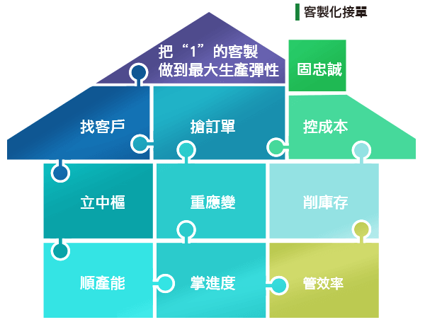 鼎新致力實現客戶數位應用價值,針對企業各成長階段的管理需求延展應用,提供一體化解決方案。