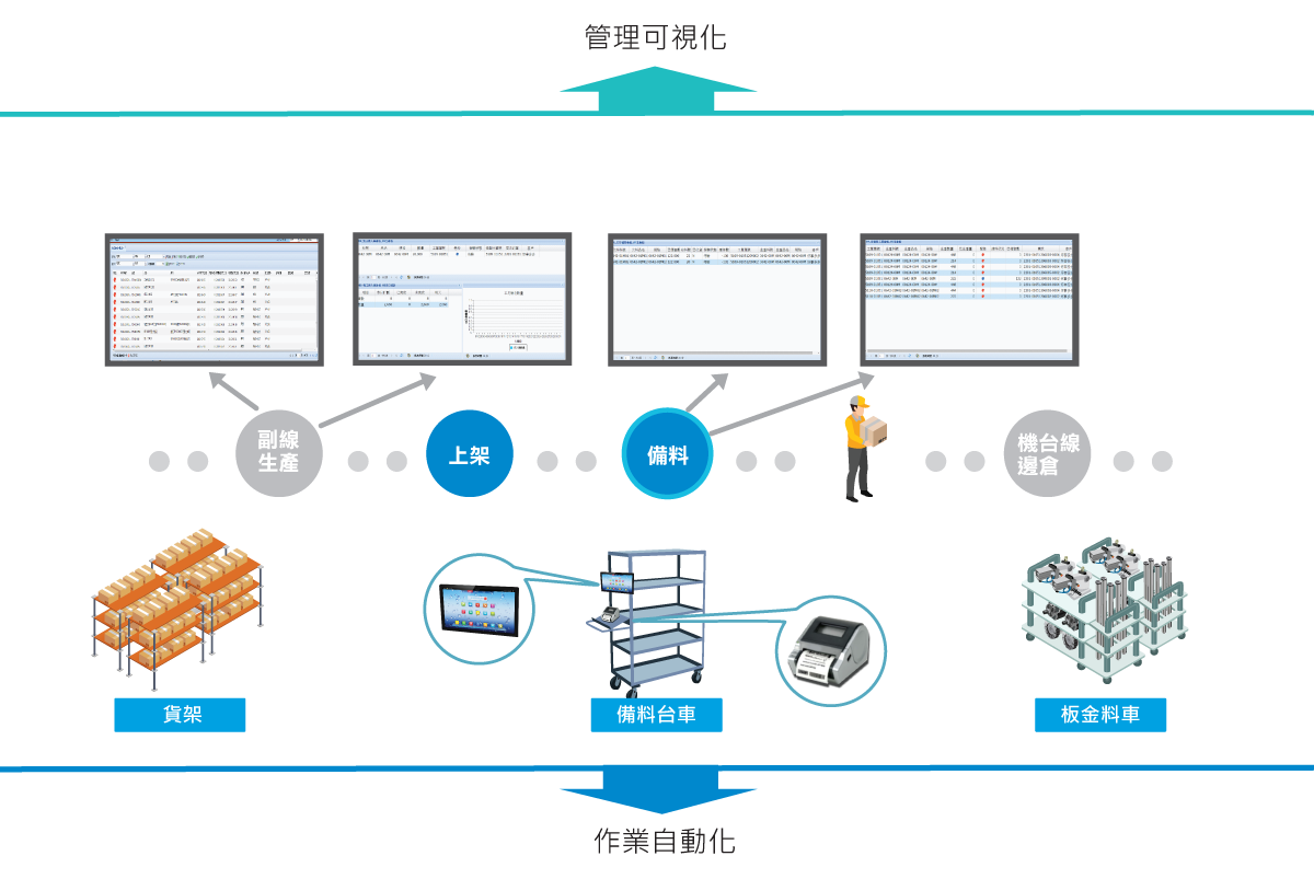 採購:交期變來變去,預組件用料很難掌控精準,不是太多佔地方,要不就是用完才知道。 現場主管:生產要管控的細節這麼多,稍不留意就忽略了副線的預組進度。只能說顧了這頭,就掉了那頭。