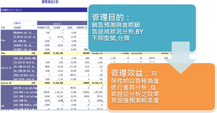 1.業務對客戶銷售掌控 2.業務銷售預估的精準 3.比較差異影響的分析 4.銷售預估能力的提昇