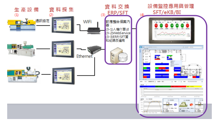 並提升生產效率 - 尋求人機整合方案,讓現場報工資料即時蒐集, 並進行全廠機台及時透明監控