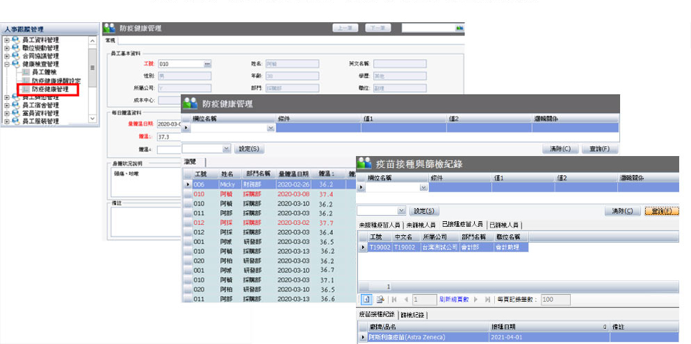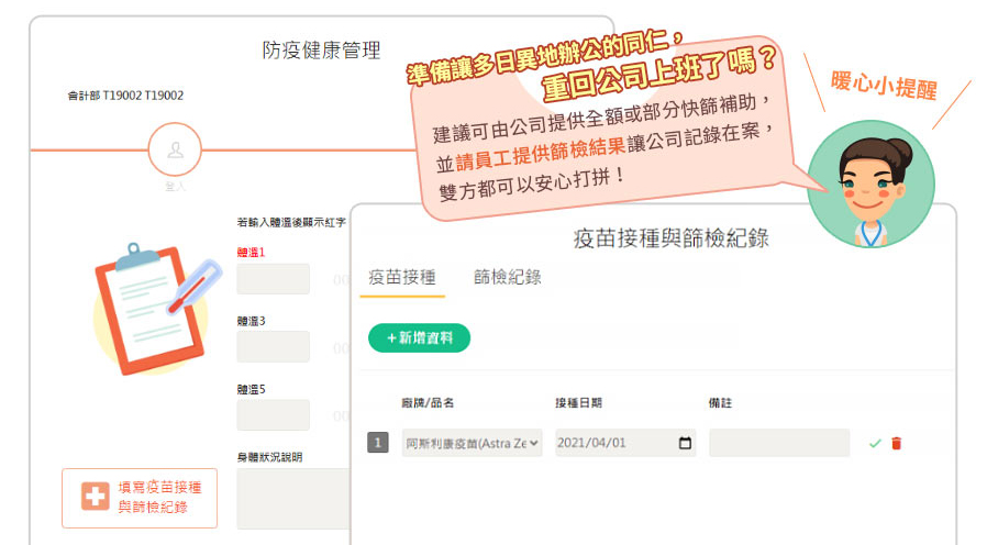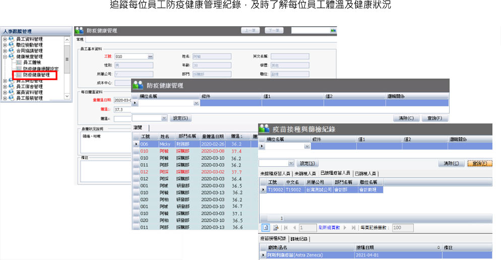 追蹤每位員工防疫健康管理紀錄,即時了解每位員工體溫及健康狀況