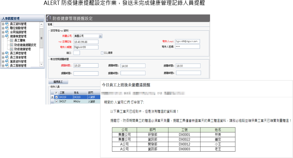 ALERT 防疫健康提醒設定作業,發送未完成健康管理記錄人員提醒