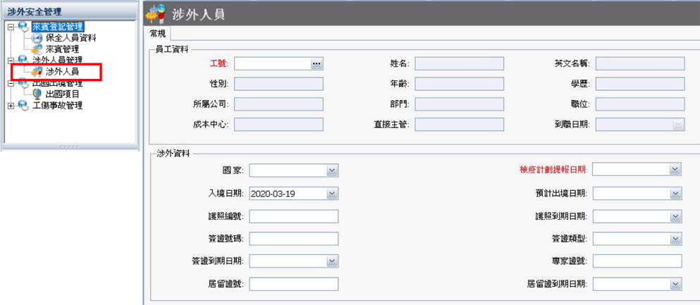 櫃檯人員開啟【涉外安全管理】