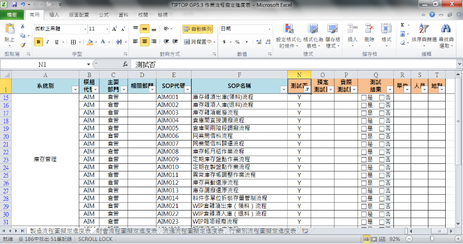 依據標準作業程序(SOP),擬訂ERP電腦系統測試劇本;再依測試劇本進行性能驗證,產生測試記錄。