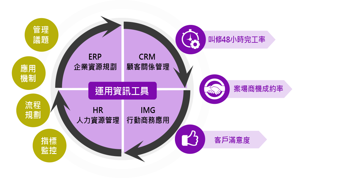 以效益為導向的關鍵職能作業流程規劃,彈性因應市場不確定性與法令政策改變,提供對應的管理系統與諮詢服務。