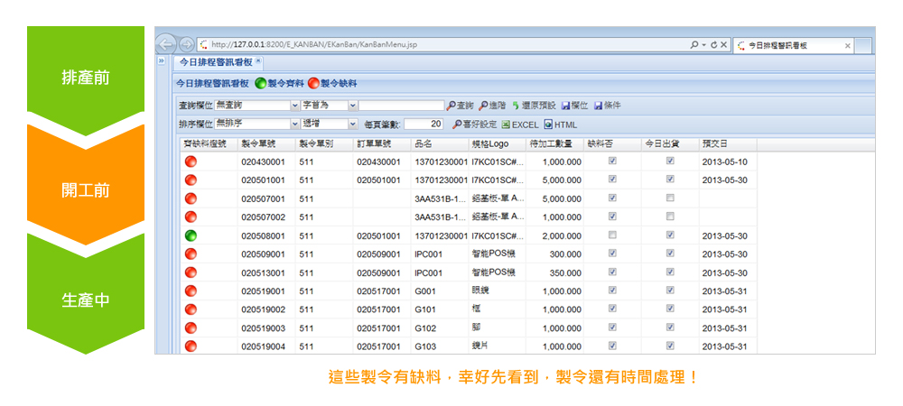 組裝時,才發現某些半品還未加工好,但也不知是東西現在是做到哪一製程,是外包還是廠內?