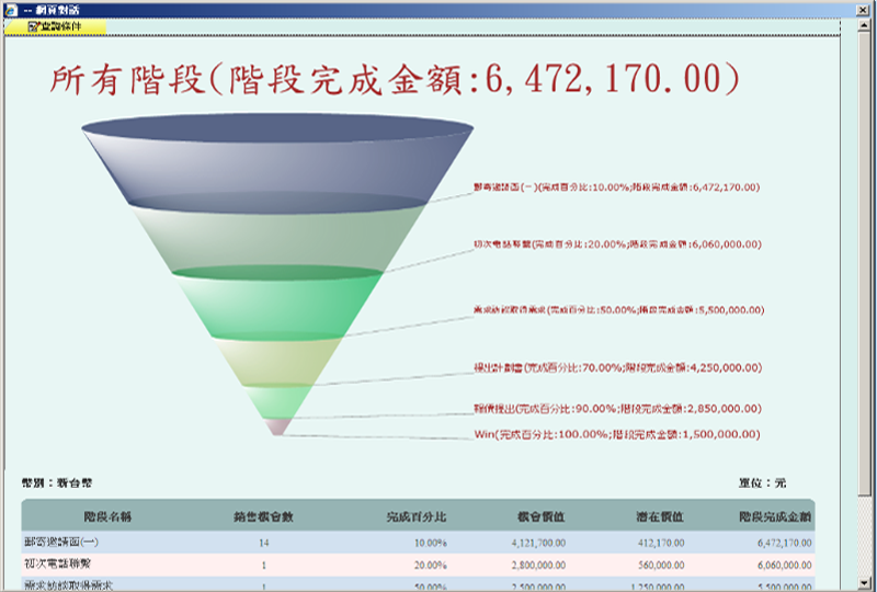 銷售團隊可透過能見度分析、可實現分析、銷售分析的數據輔助,達成營業目標。客戶與經銷商資料建入資料管管理,聯繫歷程、人脈管理、產品報價輕鬆完成!