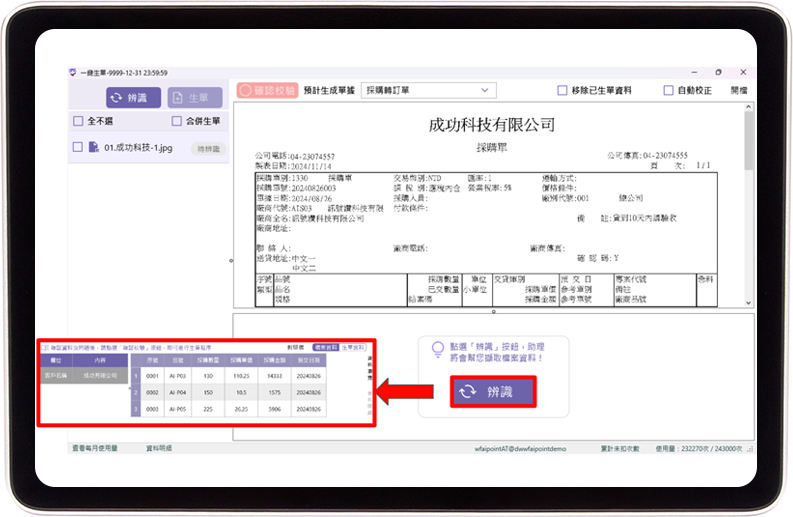 AI數智員工能智能辨識文件和圖檔,解決採購人員手動Key in單據耗時費工又容易出錯的困境。
