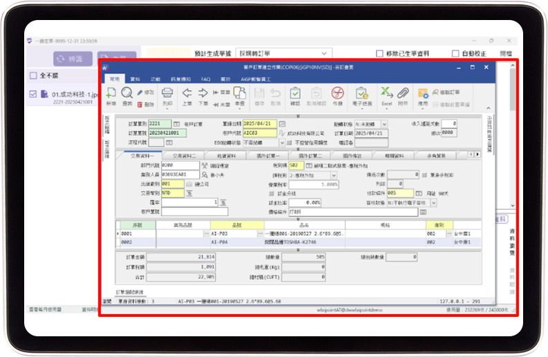 當訂單生成助手自動產出相關單據後,使用者可直接點選單號快速開啟對應單據進行資料審核,大幅提升日常作業的效率與精準度。