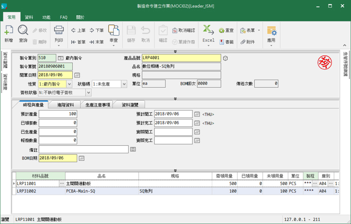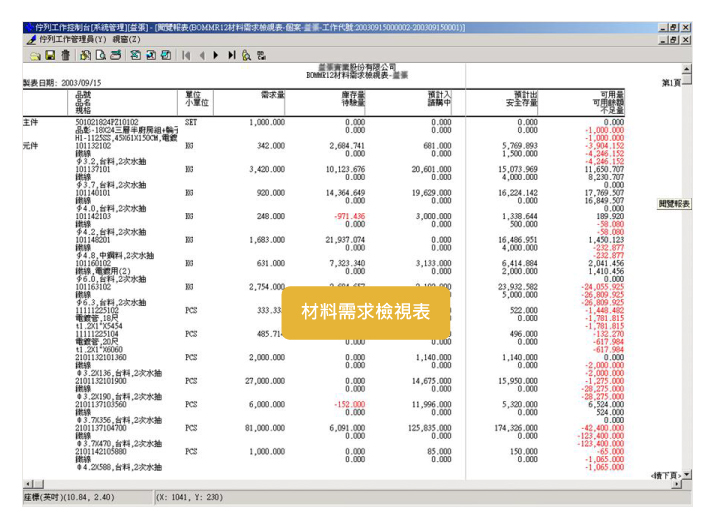 通常由經驗值及訂單交期來進行生產。無法預估原料、半成品(託工件)、成品的交期及生產天數...