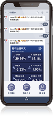 透過LINE 整合商業智慧系統。推播通知戰情,快速聚焦,即時掌握最新數據。