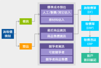詢報價資訊統一管理,便能提升報價速度與正確性。同時面對市場變化作製程調整,同步更新報價成本結構,可提升訂單簽約率。把客戶詢報價成交統計及分析管理,還能提升客戶關係滿意度。